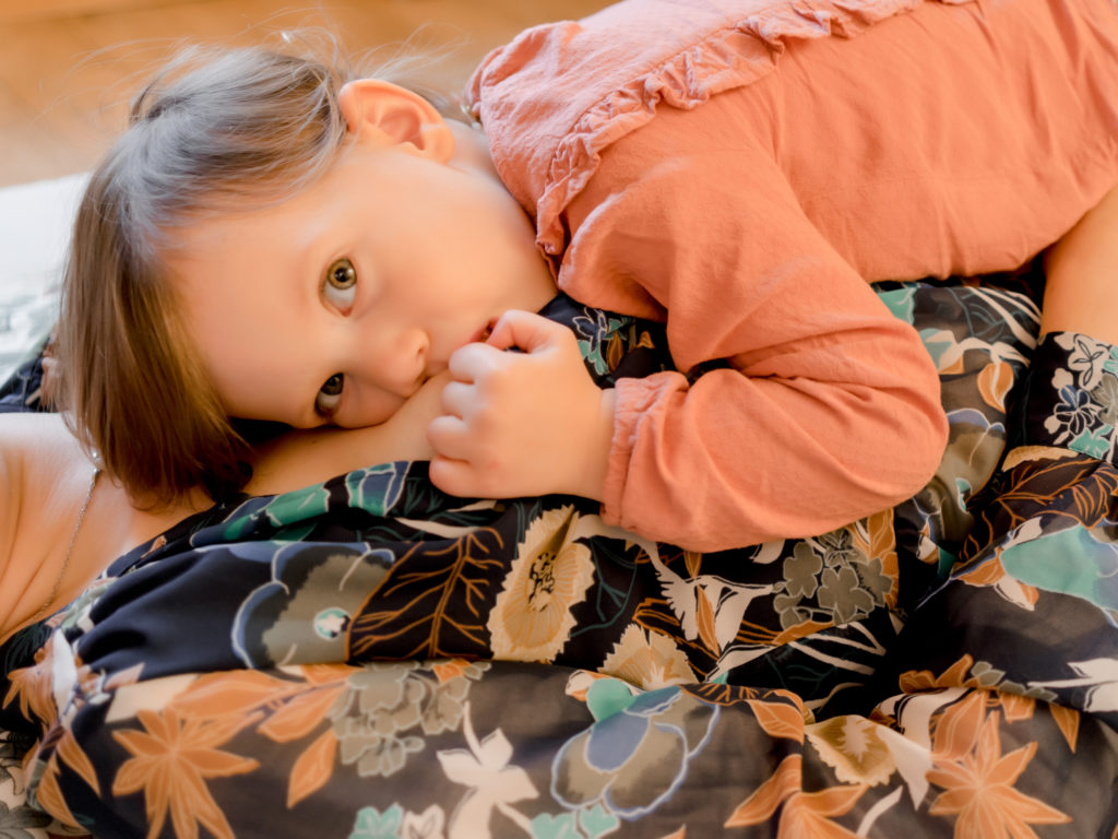 Garance et Léonie sont donc venues passer un moment avec moi pour discuter, rire et partager quelques moments de câlins et de tétées. J’ai pu être témoin de leur belle complicité et bénéficier de la joie de vivre de la petite Léonie. Garance avait choisi de porter une chemise satinée d’un très bel effet et sa petite Léonie portait une petite blouse volantée de couleur corail qui faisait merveilleusement bien ressortir ses jolis yeux si expressifs.